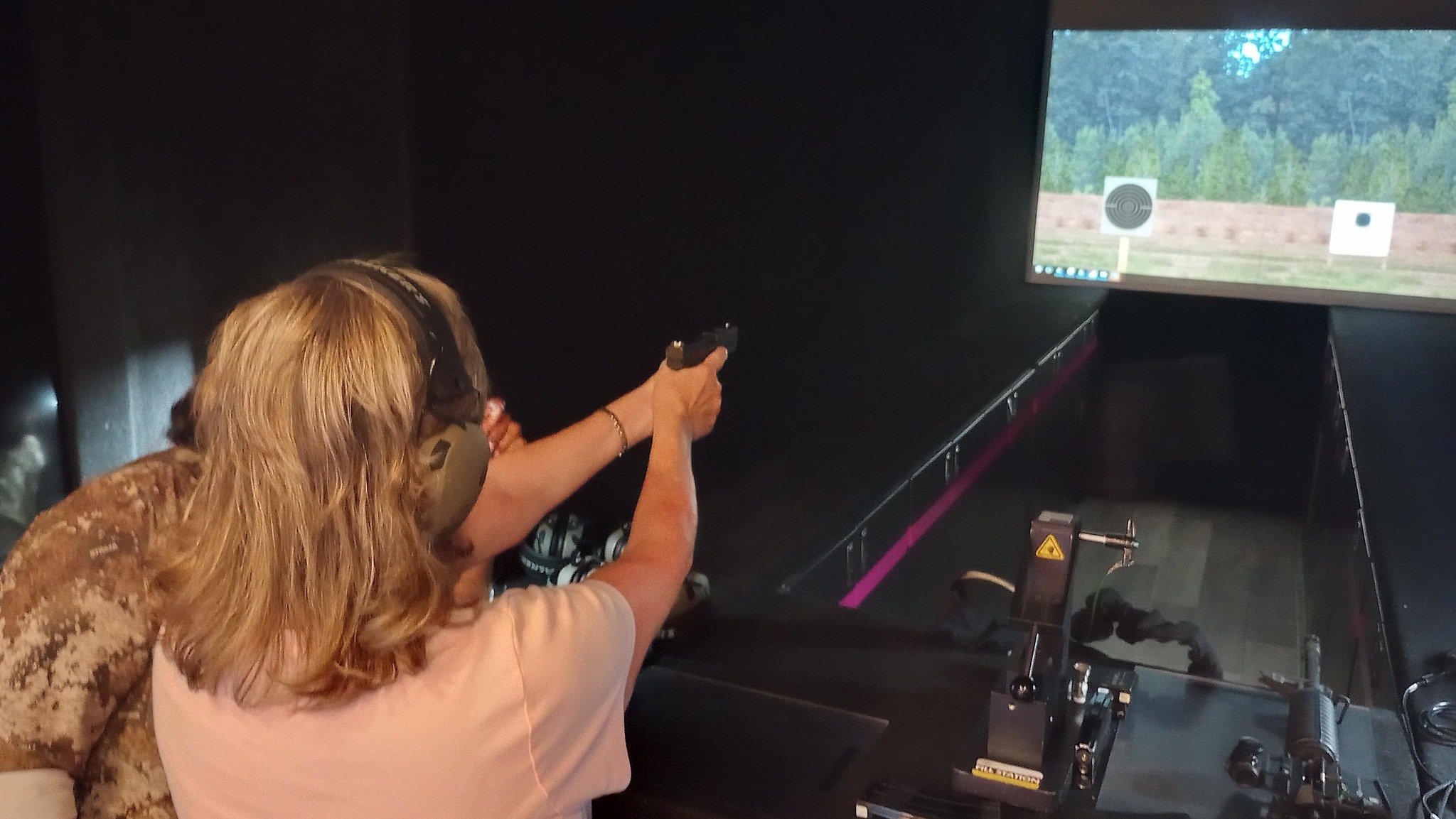 Shawn handed me off to TBuzz, who covered gun safety protocol. Although no live rounds are fired within the simulator, she explained that every gun should be treated as if it’s loaded and lethal.